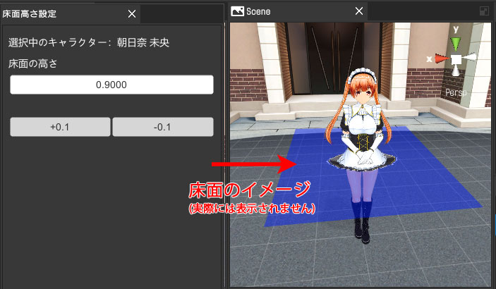 スカートや髪等の物理挙動を行うパーツに対して、仮想的な床の高さをキャラクター毎に設定することができます。