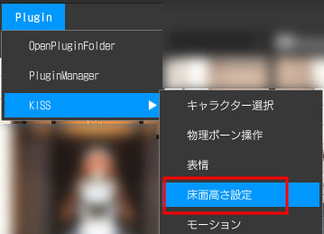 メニューバーの「Plugins>KISS>床面高さ設定」から開くことができます。