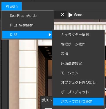 ポストプロセスの装着とその簡易的なパラメータの設定が可能です。
